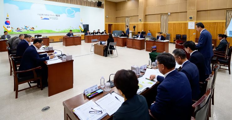 제주도의회 농수축경제위원회는 16일 서귀포시청을 방문해 행정사무감사를 벌였다. 서귀포시 제공