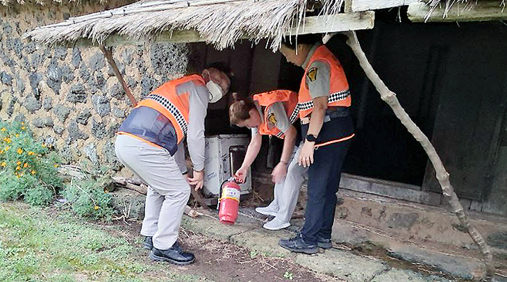 초가지붕의 특성상 화재 연소 확대가 빠르게 진행돼 초기 진화에 필요한 소화기 상태를 꼼꼼히 점검했다.