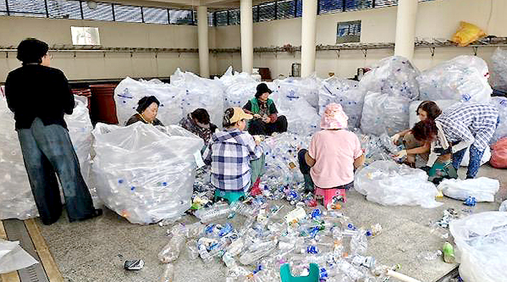 제주시 도두동 새마을부녀회(회장 이영지)는 지난 15일 회원 20여 명이 참여해 생활 속 자원 재활용 활성화를 위해 '투명 페트병 분리작업'을 진행했다.