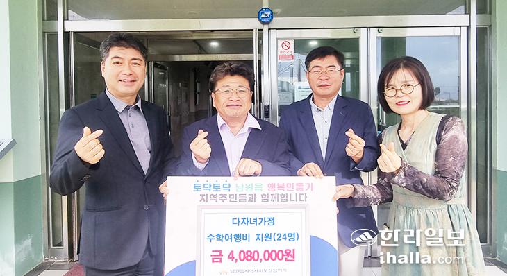 서귀포시 남원읍지역사회보장협의체(공동위원장 김기창, 고권우)는 지난 16일 다자녀가정 학생 24명의 수학여행경비를 지원했다.