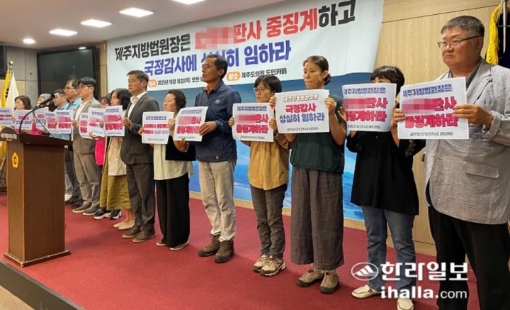 제주지방법원 A 판사에 대한 국정감사 증인 출석을 요구하는 기자회견. 한라일보DB