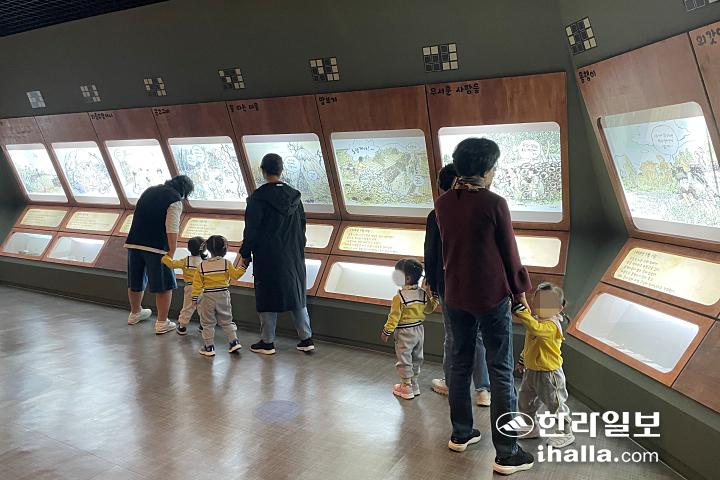 22일 오전 방문한 4·3평화공원 내 4·3어린이체험관. 어린이집 원아 6명과 함께 체험관을 찾은 교사들은 어린이 눈높이에 맞춰 4·3에 대해 설명하며 곳곳을 둘러봤다.