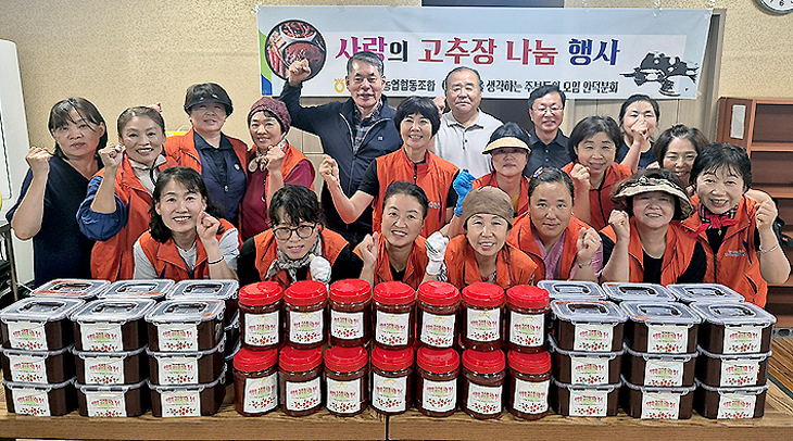 제주안덕농협(조합장 이한열) 고향주부모임(회장 윤은숙)은 지난 18일 지역 내 홀로어르신 가정 등 취약계층 지원을 위한 '사랑의 마늘고추장 나눔 행사'를 실시해 회원 30여 명이 참여해 만든 마늘고추장을 150곳에 전달했다.