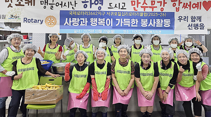 서귀포칠십리로타리클럽은 지역사회 봉사와 나눔을 실천하는 국제로타리 소속 단체로, 매년 정기적으로 어르신 급식 봉사, 환경 정화, 취약계층 지원 등 다양한 사회공헌활동을 이어오고 있다.