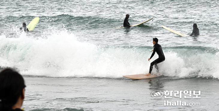 [한라일보] 22일 제주시 이호해수욕장에 많은 서퍼들이 찾아 서핑을 즐기고 있다. 강희만기자