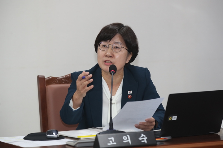 23일 제주도의회 행정사무감사에서 고의숙 의원이 제주도교육청을 상대로 질의하고 있다. 제주도의회 제공