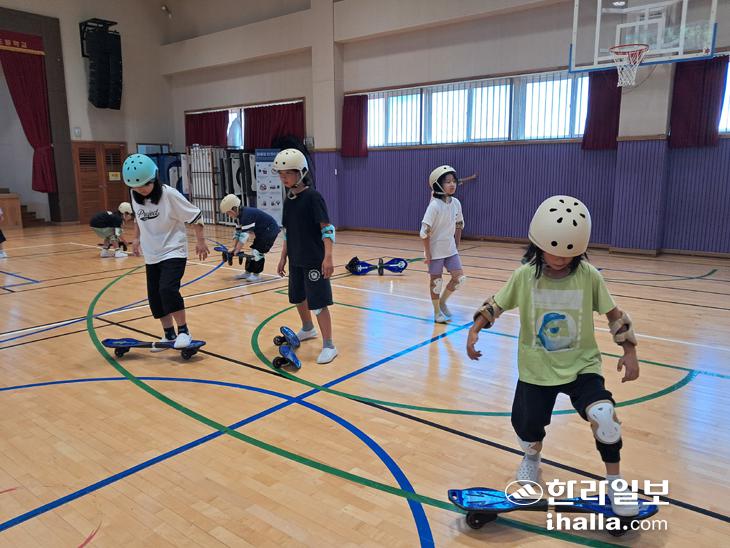 평대초가 지난 8월 19일부터 27일까지 여름학기 프로그램의 일환으로 진행한 글로벌생태스포츠 활동. 도교육청 제공