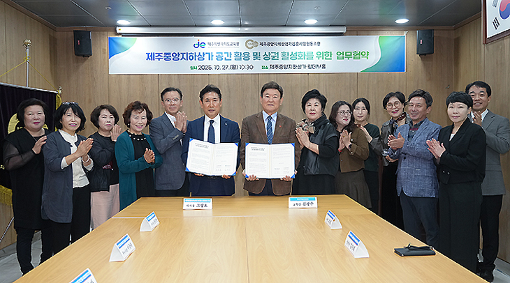 [한라일보] 도교육청은 27일 제주중앙지하상점가진흥사업협동조합(이사장 고정호)과 '제주중앙지하상가 공간 활용 및 상권 활성화를 위한 업무협약'을 체결했다.