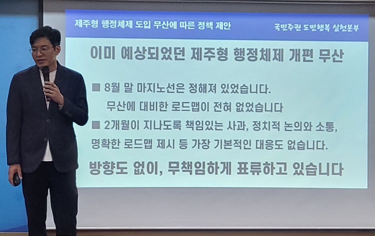 28일 제주도의회 도민카페에서 열린 국민주권 도민행복 실천본부 기자회견.