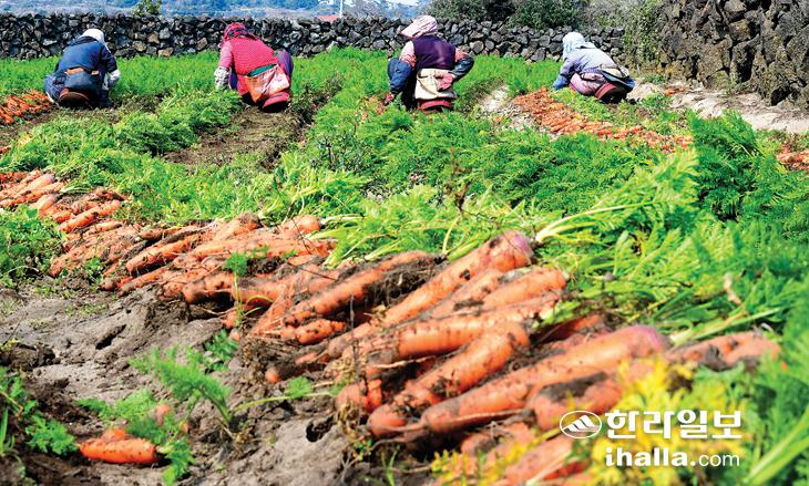 제주 농민들의 당근 수확 장면. 한라일보 DB
