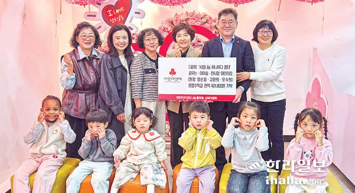 제주시 삼도1동 소재 꿈꾸는·아이숲·천사랑어린이집(원장 양순임·고원희·오숙희)은 지난 27일 삼도1동(동장 송정심)을 방문해 '사랑나눔 아나바다 장터' 운영을 통해 마련한 40만1800원의 이웃돕기 성금을 기탁했다.