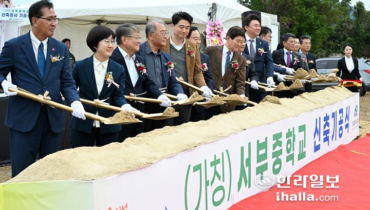 30일 제주시 외도1동 55번지 일원에서 진행된 (가칭)서부중학교 신축공사 기공식. 강희만기자