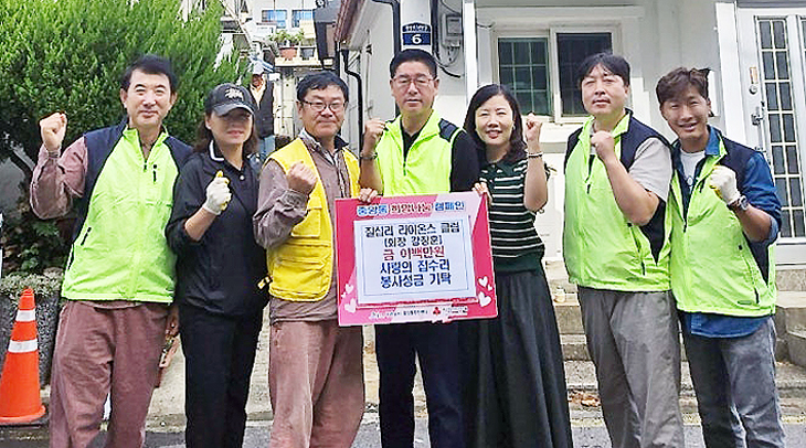 서귀포칠십리라이온스클럽(회장 강창훈)은 최근 중앙동에 '사랑의 집수리 봉사' 지원금 200만원을 기탁했다.