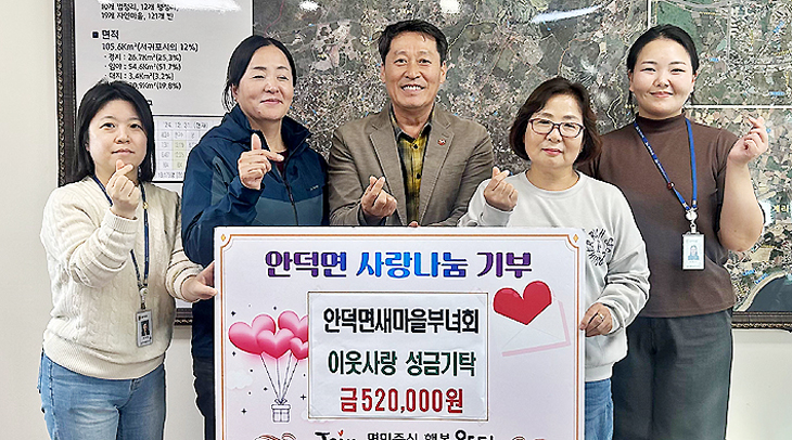 서귀포시 안덕면새마을부녀회(회장 신선순)는 지난 29일 지역 내 어려운 이웃을 위해 사용해 달라며 성금 52만원을 안덕면(면장 김태유)에 기탁했다.