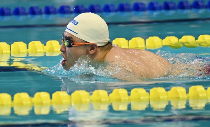 4일 제45회 전국장애인체육대회 평영 100m(SB6-7)에서 2회 연속 금메달을 따낸 김영빈이 역영하고 있다. 제주자치도장애인체육회 제공