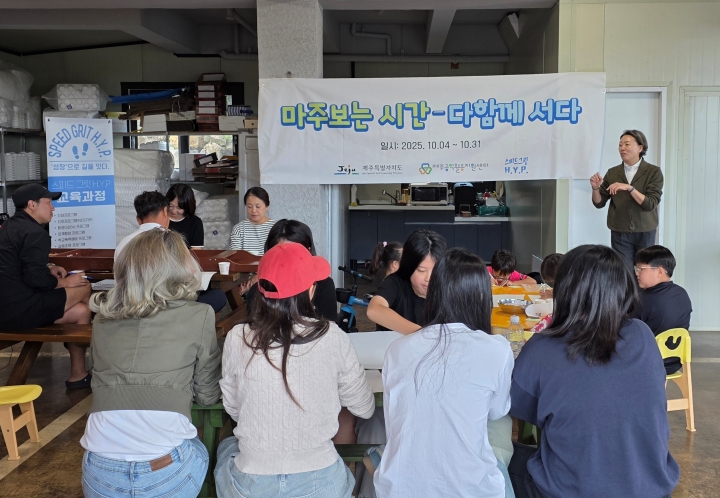 스피드 그릿 H.Y.P.가 진행한 부모와 자녀가 함께 참여하는 정서소통 ‘마주보는 시간–다 함께 서다’ 프로그램 모습. 이윤희 제공