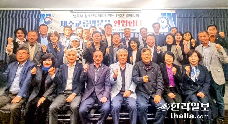 법무부 청소년범죄예방위원 제주지역협의회(회장 고영두)는 지난 2일 제주시 노팅힐웨딩 컨벤션에서 전주지역협의회(회장 김홍식)의 제주 방문 환영간담회를 개최했다. 양 협의회는 지난해 협약을 맺은 이후 청소년보호 및 지도 프로그램 개발 및 시행에 관한 정보 공유 및 학교폭력예방·근절을 위한 사업교류, 지역 청소년 문화교류 활성화 정보 등을 논의하며 협력해오고 있다.