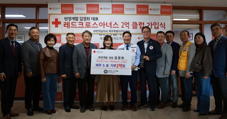 현경개발 김경희 대표는 최근 대한적십자사 제주특별자치도지사(회장 정태근)를 방문해 레드크로스아너스 2억 클럽에 가입했다.