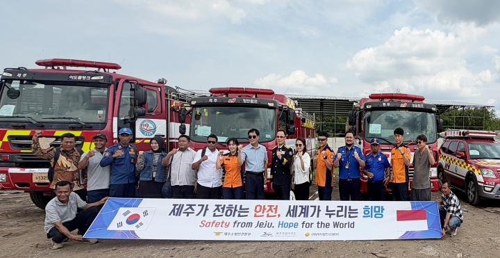 제주소방안전본부는 인도네시아에 소방차량 6대를 기증했다. 제주소방안전본부 제공