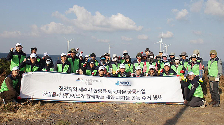 제주시 한림읍(읍장 고석건)은 지난 6일 클린테크 선도기업 (주)이도(YIDO, 대표이사 최정훈)와 함께 추진 중인 '에코 마을(Eco Village)' 조성을 위해 수원리 해안가 일대에서 폐어구, 플라스틱 등 각종 해양폐기물을 수거하고 (주)이도에서 보유한 첨단 처리시설로 수거 폐기물을 신속하게 자원화 처리했다.