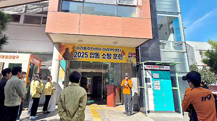 아라동주민센터(동장 현치하)와 제주소방서아라119센터(센터장 문원철)는 지난 3일 주민센터 전 직원과 제주소방서아라119센터 소방관 등 30여 명이 참여한 가운데 2025년 공공기관 합동 소방훈련을 실시했다.
