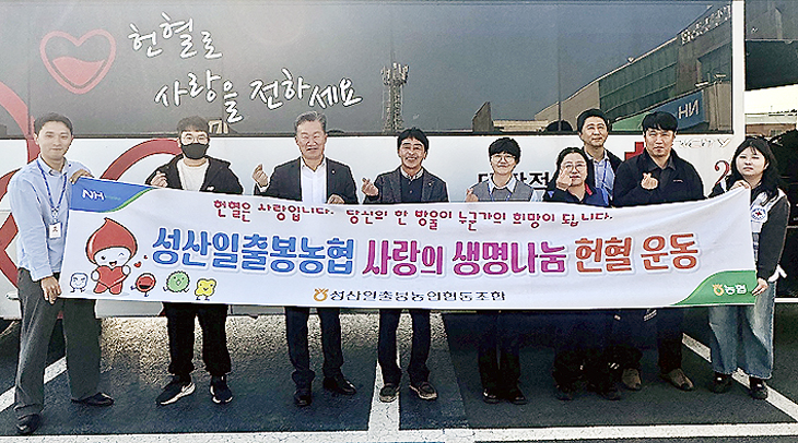 제주 성산일출봉농협(조합장 박명종)은 6일 본점 주차장에서 도내 혈액 수급 안정을 위해 대한적십자사 제주혈액원과 연계해 '2025년 제4차 사랑의 생명나눔 헌혈운동'을 실시했다.