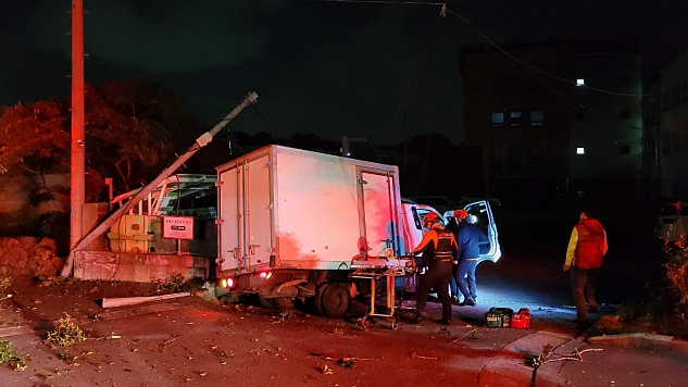 10일 새벽 제주교도소 사거리에서 1t 트럭이 전신주를 들이받아 30대 쿠팡 배송 기사가 숨졌다. 제주소방안전본부 제공