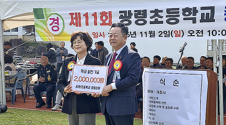이날 총동문회는 학교 발전기금 200만원을 김연희 광령초등학교장에게 전달했다.
