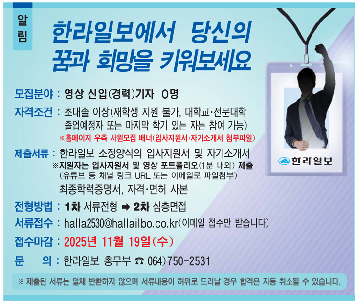 [알림] 한라일보에서 당신의 꿈과 희망을 키워…