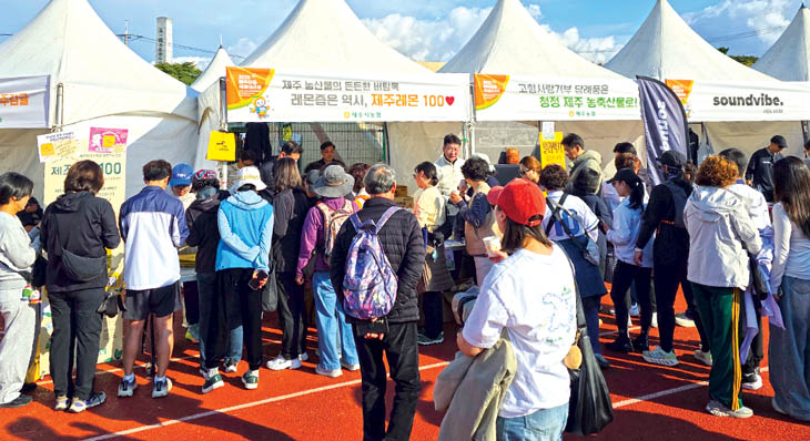 제주시농협(조합장 고봉주)은 16일 제주시 조천운동장에서 열린 '제21회 2025 제주감귤국제마라톤대회'에서 제주 농산물 가공품 홍보부스를 운영했다.