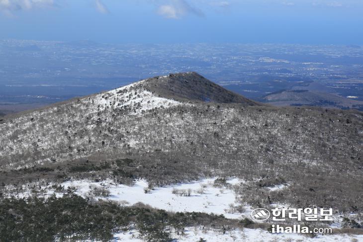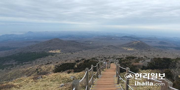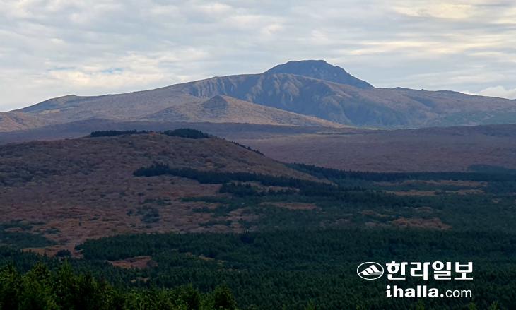 영실탐방로에서 바라본 볼레오름, 오른쪽은 이스렁오름이다. 사진=김찬수