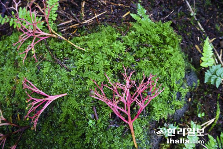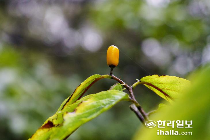 데크 길을 벗어나 족은대나오름(작은절물오름)을 향해 걸음을 옮겼다. 족은대나오름은 높이 657m로 큰대나오름(큰절물오름)보다 약 40m 낮다. 빨갛게 익은 팥배나무 열매가 마치 레드카펫처럼 깔려 가을 정취를 물씬 풍겨내고 있었다. 안개가 짙게 끼어 주변 경치는 잘 보이지 않았지만 오히려 신비로운 분위기를 마음에 품고 내려왔다. 큰대나오름에 올라서도 여전히 안개 때문에 시야가 제한적이었다. 날이 맑았다면 한라산을 비롯해 크고 작은 오름들이 파노라마처럼 펼쳐졌을 테지만 그럼에도 시원한 기운이 온몸을 감싸 기분만큼은 상쾌했다.