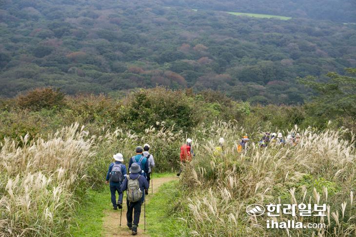 거친오름을 내려가는 길목에 억새가 피어 있다. 사진 정은주