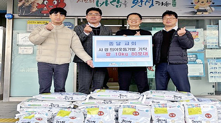 제주시 구좌읍 종달리에 위치한 종달교회(목사 김익중)는 지난 19일 저소득 취약계층을 위한 쌀 10㎏ 80포대(300만원 상당)를 구좌읍(읍장 안석봉)에 전달했다.