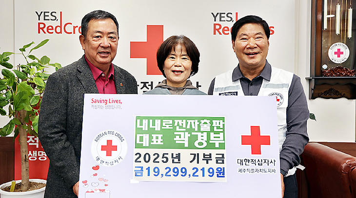 대한적십자사 제주도지사(회장 정태근)는 24일 곽경부 내내로전자출판 대표가 지난 1월부터 현재까지 취약계층 지원, 난치병 학생 지원, 산불구호 성금 등 다양한 목적에 따라 1929만원을 기부했다고 밝혔다.