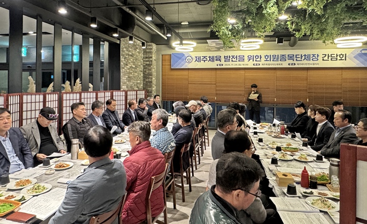 제주특별자치도체육회는 지난 24일 제주바다만찬씨갤러리에서 48개 정회원종목단체장들을 대상으로 제주체육 발전을 위한 회원종목단체장 간담회를 개최했다.