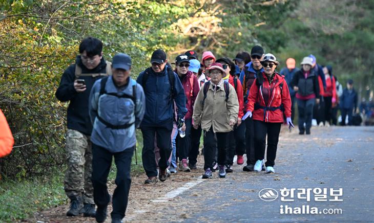 지난해 11월 3일 한라산 중턱 어승생 1100도로 구간 '고상돈로'에서 열린 제주 산악인 고상돈을 기리는 제14회 한라산 고상돈로 전국걷기대회. 한라일보DB