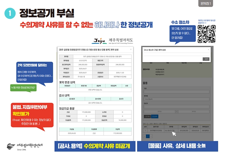 제주참여환경연대, 오영훈 도정 수의계약 실태조사 결과 발표