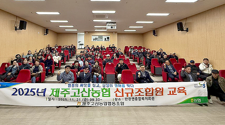 제주고산농협(조합장 고영찬)은 지난 21일 한경면종합복지회관에서 조합원 약 80명이 참석한 가운데 신규조합원 교육을 실시했다.