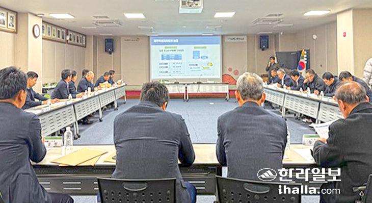 이날 회의에서는 제주농업의 디지털 전환과 제주DA 플랫폼 활성화와 생산자 중심의 농산물 수급안정 정책을 위해 제주도 농업기술원 농업디지털센터와 제주농산물수급관리센터를 초청해 교육을 진행했다.