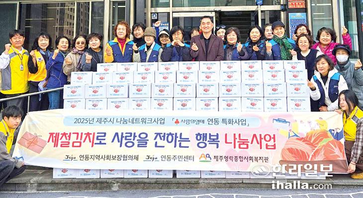 제주시 연동지역사회보장협의체(공동위원장 문성조· 신애복)는 지난달 27일 위원 20여 명이 참여한 가운데 '제철김치로 사랑을 전하는 행복 나눔 사업'을 진행했다.