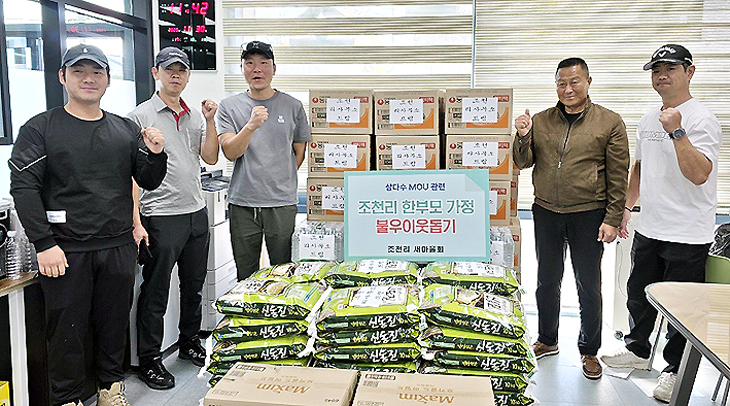 제주시 조천리새마을회(이장 박재영)는 조천리 마을 내 어려운 이웃 40가구에 라면 1박스, 쌀 10㎏, 생수 1묶음, 믹스커피 1박스 등 식료품을 전달했다.