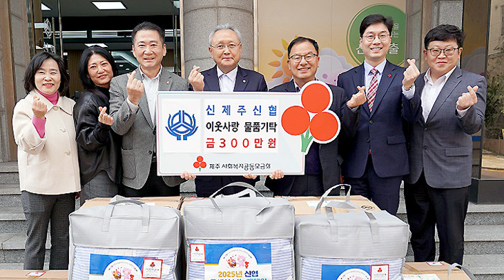 신제주신협(이사장 김용석)은 최근 본점 앞에서 노형동 취약계층을 위해 300만원 상당의 이불 및 생필품을 제주사회복지공동모금회(회장 강지언)에 기탁했다.