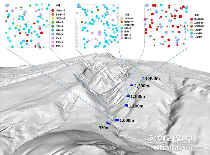 한라산 방위·고도별 수목 분포도. 제주도 제공