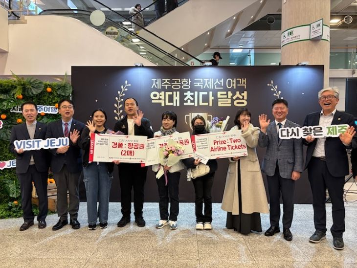 한편 한국공항공사 제주공항은 3일 공항 1층 도착장에서 국제선 여객 최다 달성 기념행사를 개최했다.