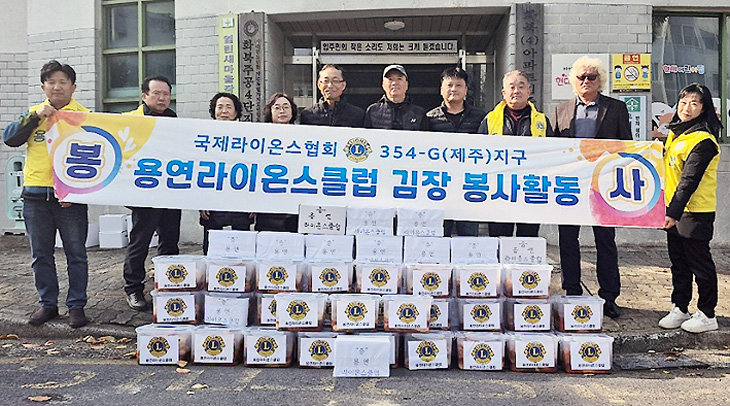 용연라이온스클럽(회장 김성민)은 지난 7일 '사랑의 김장 나눔 행사'를 진행해 김장김치 6㎏ 70박스는 화북1아파트, 화북4아파트, 휴먼시아 통장, 이어도적십자봉사회 등에 전달했다.