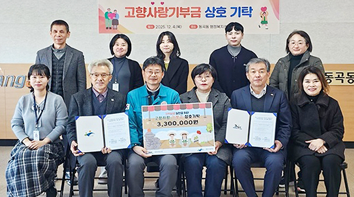 제주시 일도2동주민센터(동장 강경임)는 고향사랑기부제 활성화와 지역 간 상생협력 강화를 위해 지난 4일 광주 광산구 동곡동행정복지센터에서 '고향사랑기부금 상호기부 기탁식'을 개최해 총 330만원을 상호 기부했다.
