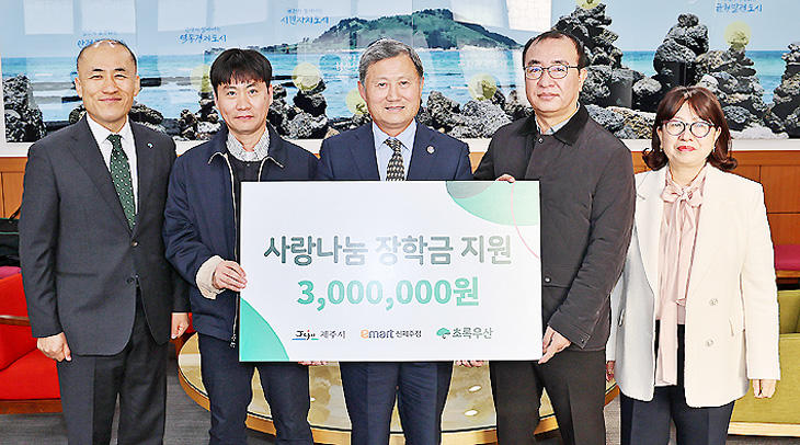 이마트 신제주점(지점장 김정근)은 11일 제주시에 사랑나눔 장학금 300만원을 전달했다.