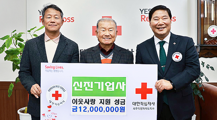신진기업사(대표 정병식, 정필곤)는 대한적십자사 제주도지사(회장 정태근)를 방문해 성금 1200만원을 전달했다.
