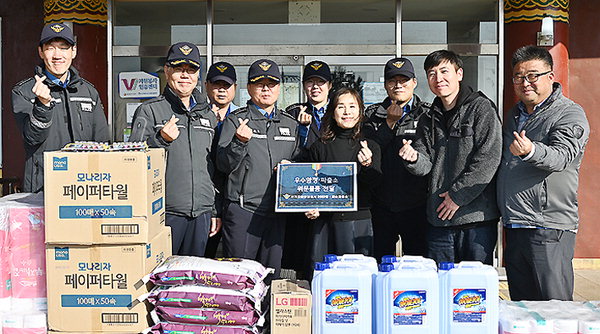 전달된 생필품은 제주지방해양경찰청이 주관한 최우수 함정과 파출소에 서귀포해경 3003함과 화순파출소가 각각 선정되며 받은 포상금으로 마련됐다.